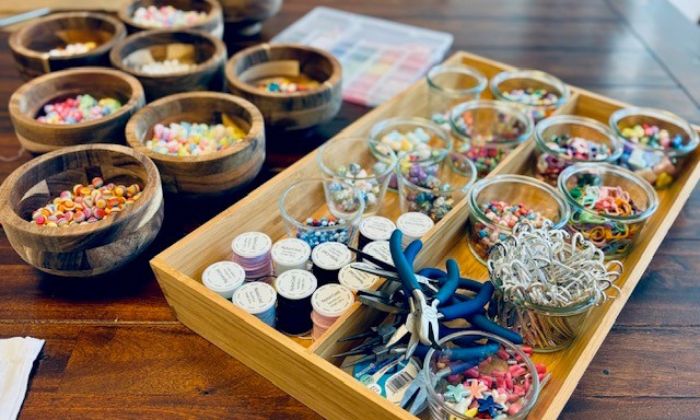In der Perlenwerkstatt werdet ihr zu Schmuckdesigner:innen! Ihr könnt (Freundschafts-) Armbänder, Schlüsselanhänger, Taschenanhänger und Lesezeichen fädeln oder coole Ringe und Ohrringe machen. Es gibt eine große Auswahl an schönen Perlen, Slidern, Bändern und Charms und jede Menge Ideen.