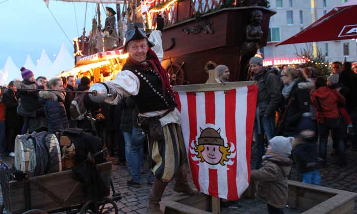Mit feinster Jonglage und deftigen Seeräubergeschichten unterhält dieser mit allen Meereswassern gewaschene Weltensegler die Landeier zu Köln. Allzu gerne nimmt er auch als Seiltänzer die Unterstützung seines Publikums in Anspruch, denn als Pirat muss er zwischen den Masten balancieren können.
