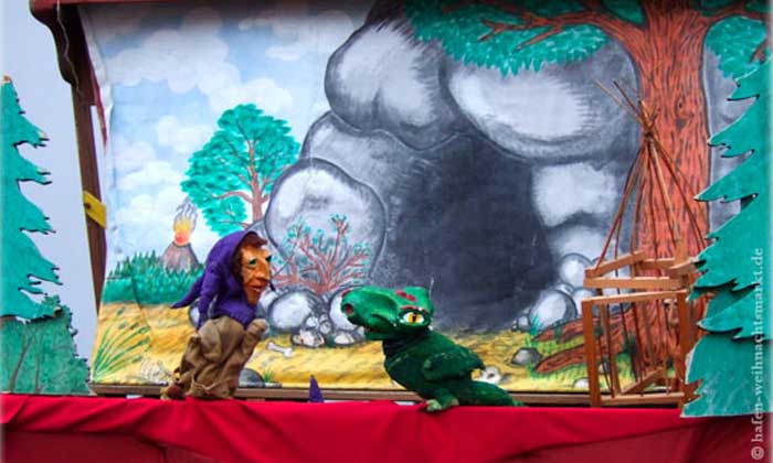Der Wikinger Blauzahn erzählt euch am ASTRA-Holzschiff „Trudel“ die Weihnachtsgeschichte vom Esel aus dem Siebengebirge, der seine Reise nach Bethlehem angetreten ist.