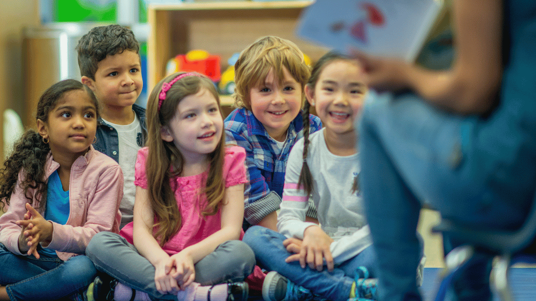 Kinder von 3 bis 6 Jahren hören zusammen mit ihren Eltern einer Bilderbuchgeschichte zu, die visuell begleitet wird.