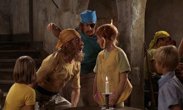 Die erfindungsreiche Pippi sorgt aber sehr bald für Möglichkeiten, um ihren Vater zu retten, den Piraten ihr Schiff wegzunehmen und die übrige Mannschaft zu befreien. Sie hofft auch, daß ihr Vater mit in die „Villa Kunterbunt" zurückfährt, aber er will weiter auf den Weltmeeren segeln, und so kehren Pippi, Tommy und Annika allein zurück.
