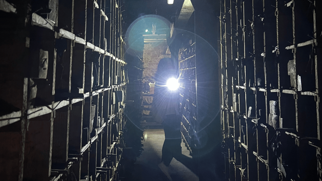 Die Teilnehmer:innen der Führung lassen Scherenformen und Fantasiefiguren über die alten Fabrikwände tanzen. Wird es wohl gelingen, das Geheimnis zu lüften, nach dem Doc Jones vergeblich gesucht hat?