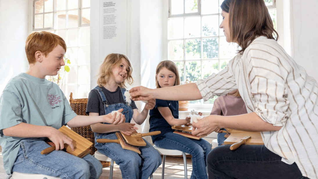 In Cromford dreht sich alles um den weißen Rohstoff, aus dem Fäden gesponnen werden können: Baumwolle. Bei der interaktiven Führung sind Jung und Alt eingeladen, der Herstellung von Garn auf die Spur zu kommen und Spinnrad und Spinning Jenny in Aktion zu erleben. Gemeinsam werden zudem die einzelnen Schritte zur Garnproduktion durchgeführt: Baumwolle lockern, kämmen und dann das entstandene Vlies strecken und verdrehen. So kann auch mit der Hand ein Faden gesponnen werden.
