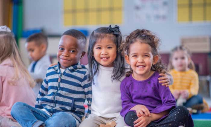 Kinder von 3 bis 5 Jahren mit ihren Eltern hören spannende Geschichten, die mit Klaviermusik begleitet werden.