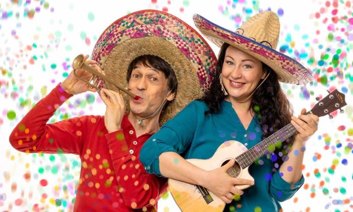 Fug und Janina spielen eigene Lieder, erzählen kleine Geschichten und laden Groß und Klein zum Singen, Klatschen, Tanzen und Lachen ein.