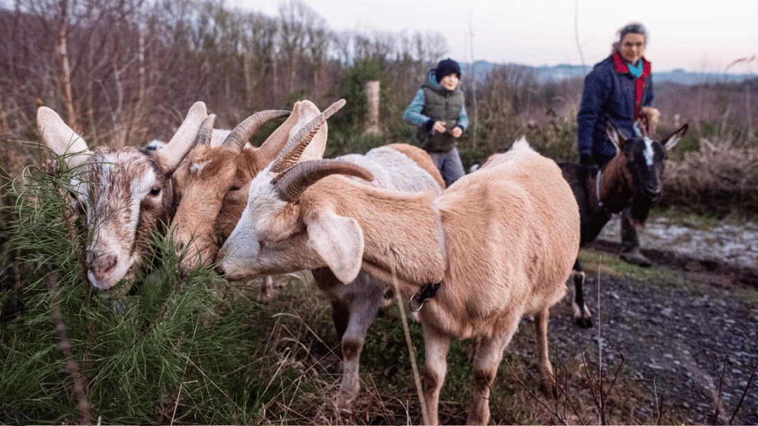 Als kleine Mensch-Ziegen-Herde geht es los in den Wald, wo die Ziegen einfach frei und ohne Leine mitlaufen. Sie sehen die Menschen als Teil ihrer Herde an und orientieren sich an dem, was sie machen. So wird gemeinsam der Bergische Wald erkundet; geklettert, gesprungen und wiedergekäut. Auch für ein Wettrennen sind sie immer zu haben!