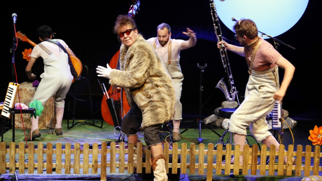 Drei Musiker, die auch Schafe sein könnten, und eine Erzählerin, die auch ein Hütehund sein könnte, bewegen sich durch die Welt der Märchen – von „Der Wolf und die sieben Geißlein“, über „Die drei kleinen Schweinchen“ bis zu „Rotkäppchen“ – und spielen mit der Angst vor dem bösen Wolf. Doch was macht den Wolf zu einem bösen Tier und was ist das überhaupt: böse? Wie entsteht die Angst vor etwas, das man nur vom Hörensagen kennt und wo führt sie hin, wenn man sie von der Leine lässt?