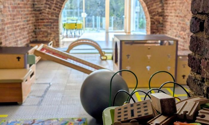 Drinnen können die Kids auf der Indoor-Bewegungslandschaft toben, im Kreativ-Raum malen und gestalten oder sich in die ruhige Leseecke zurück ziehen. Draußen gibt es mehrere Terrassen und einen wunderschönen Blick ins Grüne. Unsere Räume befinden sich im EG der Villa Karoly, einer denkmalgeschützten Villa mit modernem Glasanbau und Blick ins Grüne. Vor der Tür findet ihr ausreichend Parkplätze.