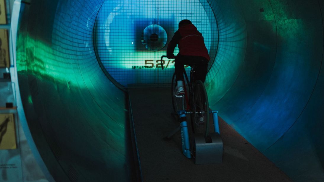 Volle Power: Im Windkanal kann selbst ausprobiert werden, wie sich Tempo anfühlt. © Jara Reker