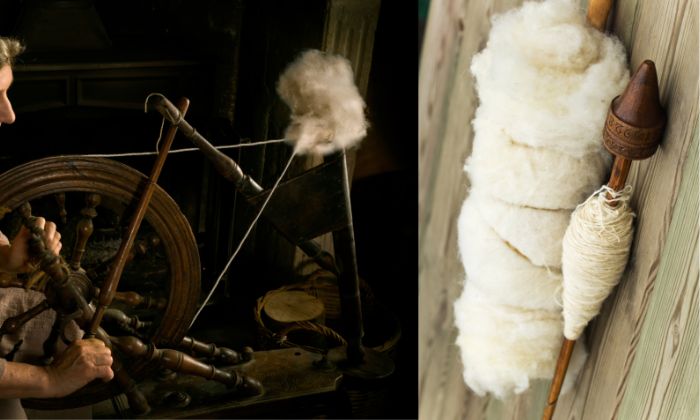 Sie erlernen dabei das Handspinnen am Spinnrad in kleinen Gruppen.
