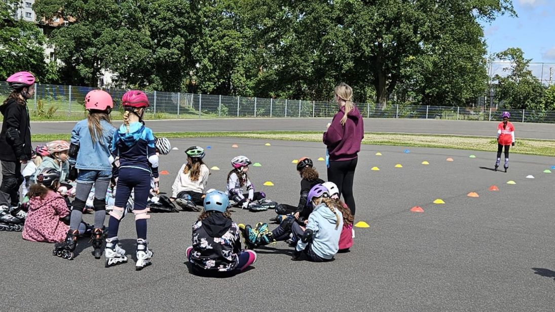 - Skate-Einheiten zum Erlernen der Basics & Sicherheit auf Skates, anschließend liegt der Schwerpunkt auf abwechslungsreichen Übungen zur Anwendung des Erlernten.