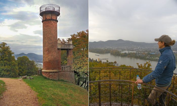 Der historische Aussichtsturm mitten im Park ist frei zugänglich – von oben reicht der Blick bis ins Siebengebirge. © Sven von Loga