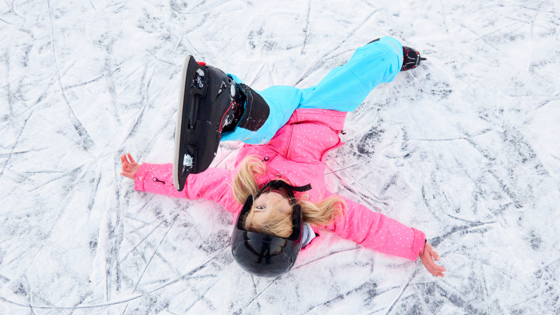 EIslaufen ist ein Winterspaß für Groß und Klein – auch, wenn man mal hinfällt. © Petr Bonek /AdobeStock