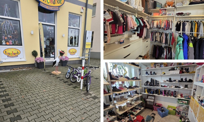 In dem 120 qm großen Geschäft werden allerlei Secondhand-Waren für Kinder und Mütter angeboten. Geschäftsführerin Marita bietet in ihrem wechselnden Sortiment vielseitige Artikel, von Babyausstattung über Schwangerschaftsmode bis hin zu handgefertigten Schlappen, zum fairen Preis an. Hier werden auch gute Kindersachen gerne in Kommission angenommen.